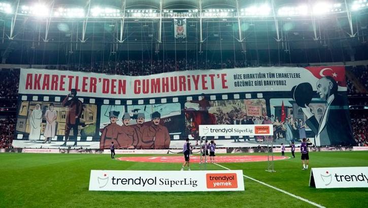 Trendyol Süper Lig’in 10. haftasında Beşiktaş, evinde Gaziantep FK ile karşılaşıyor. Bu zorlu mücadele öncesi siyah-beyazlı tribünler, Türkiye Cumhuriyeti’nin 100. yılına özel hazırladığı koreografiyi sergiledi.